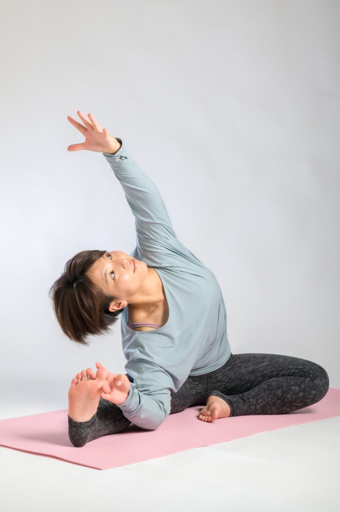 呼吸法のクンバカ(息を吐く、吸う、止める)を意識してヨガのポーズを行います。