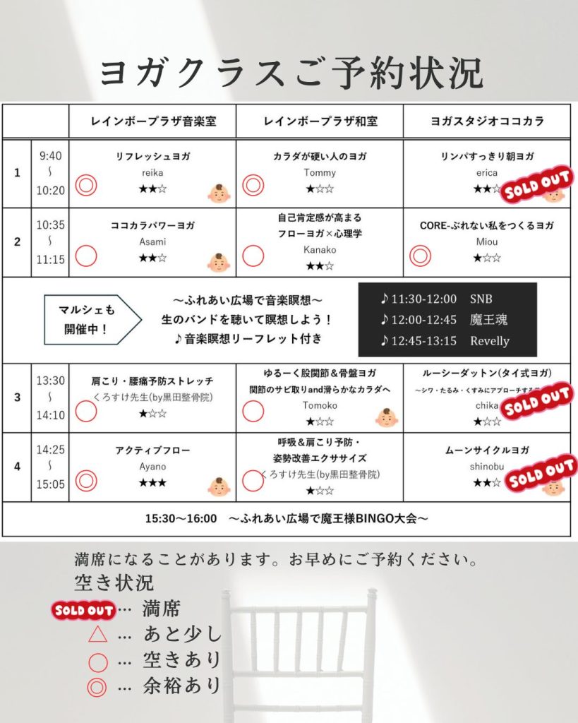 第10回北九州ヨガフェスタ〜2025秋〜のタイムスケジュール です。
